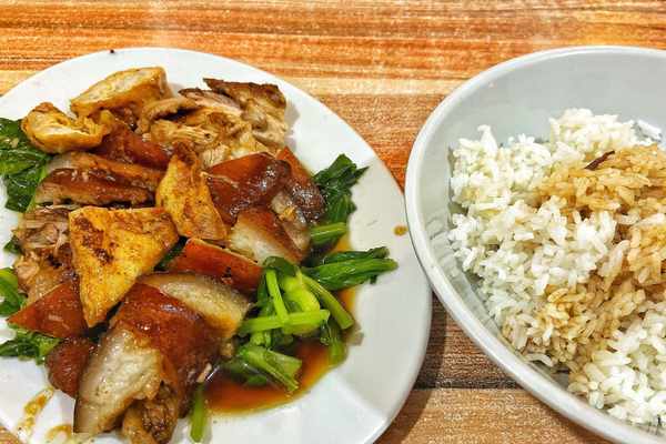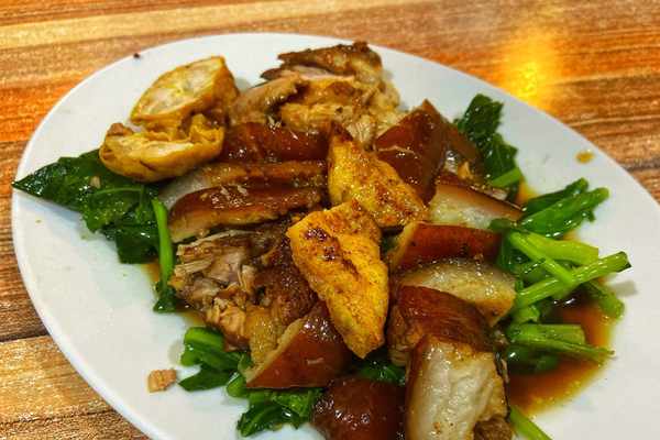北有北京烤鴨,南有隆江猪脚,作為廣東的象徵與符號,聞名全國的隆江猪脚,是潮汕地區著名的特色傳統小吃,得名於原產地惠來縣隆江鎮。相傳,猪脚飯已有一千多年的歷史,在唐代人們以吃過猪脚飯而引以為豪,因為價格高昂,被稱為是"奢侈的享受",韓愈對隆江猪脚甘醇可口、肥而不膩的口感也是讚不絕口。著名美食紀錄片《舌尖上的中國》對隆江猪脚有這樣描述:"各種鹵水中尤愛隆江猪脚,這其實是猪肘子,而且是走地猪,皮下脂肪豐盈醇厚,大師傅在小火慢燉的鍋裏,一刻不停地用鹵水淋澆,直至油脂盡除,汁味盡入……"