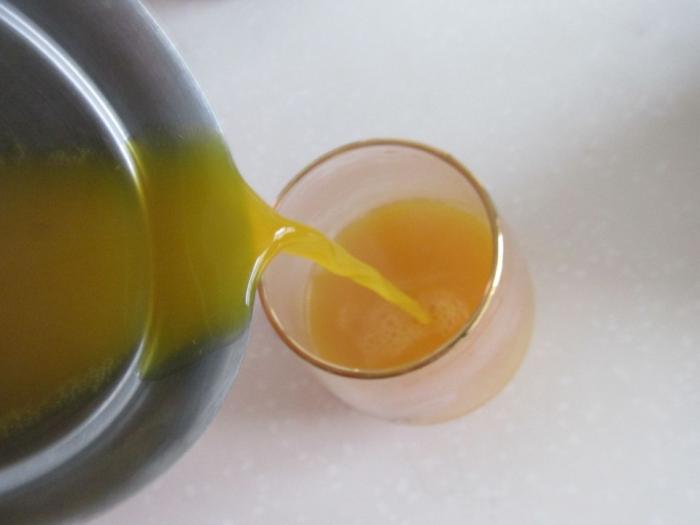 攪打好以後,會自動鳴叫,這時打開蓋子,倒出南瓜汁即可,可以看到打的很細膩。
