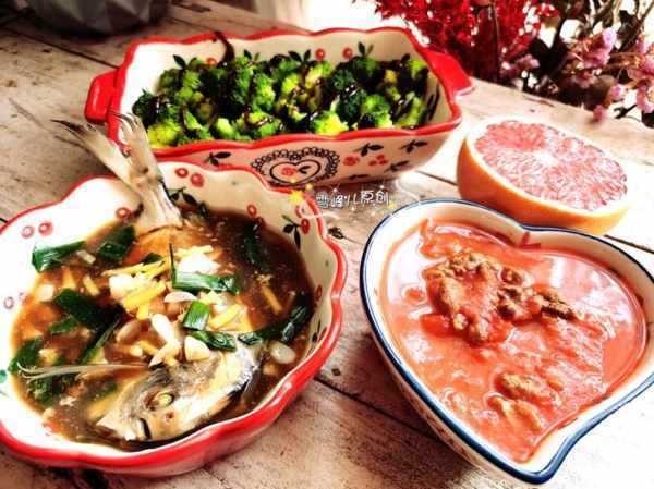 蒸銀鯧魚做法:銀鯧魚洗淨,鍋裏燒開水把篦子放上,放上鯧魚,大火蒸制10分鐘,拿出加入生抽1勺,醋1勺,少許鹽即成。蕃茄牛肉做法:牛肉切小片,放蛋清和胡椒粉,鹽醃漬。蕃茄切丁放到鍋裏小火熬的蕃茄丁化開,放入牛肉片煮熟,撒鹽調味即成。胡椒醬西蘭花:西蘭花焯熟撈出,放到盤子裏,擠上黑胡椒醬即成。配西柚半個。