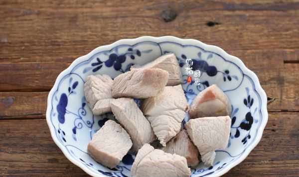 3.瘦肉切成5-6塊,或者也可以把瘦肉剁碎,讓瘦肉更容易出味兒。放入冷水鍋中汆燙,去掉血水和雜質後撈出。