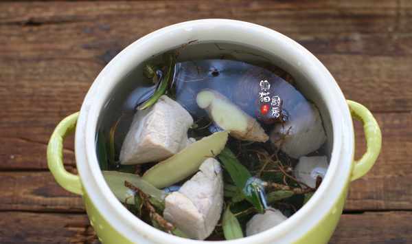 4.家裡人少,我用的燉盅,一人一碗分量正好,把生薑片、石橄欖和瘦肉以及蜜棗全部放入燉盅裏,燉盅放入高壓鍋裏,隔水蒸燉30分鐘左右,最後再加鹽調味。