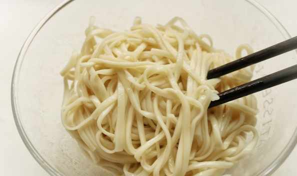 5.撈出來過一下水,然後瀝幹水分,拌一些花生油避免粘連。