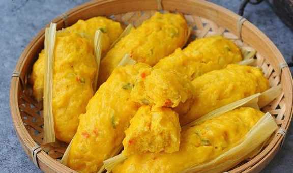 做法:南瓜蒸熟,蔬菜切丁,雞蛋磕入碗中,加水,用打蛋器打勻。將蒸好的南瓜倒進去,加入麵粉,用打蛋器充分打勻至細膩無顆粒狀。加入酵母粉。加入蔬菜粒。麵糊拌勻後蓋上保鮮膜,放在溫暖的地方發酵至兩倍大。用筷子夾起一團麵糊,放在玉米葉片中,用筷子稍微整理一下,表面抹平,兩邊都包裹好,防止漏出來。全部都做好後,擺入蒸鍋,大火蒸10分鐘就可以了,細膩軟糯的新式玉米窩頭就可以出鍋啦,柔軟香甜,比傳統的玉米窩頭好吃多啦!喜歡吃粗糧的朋友一定要試試。