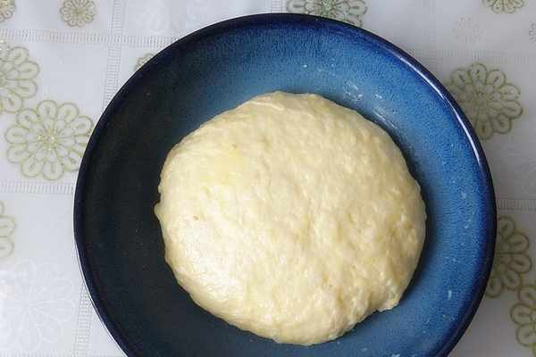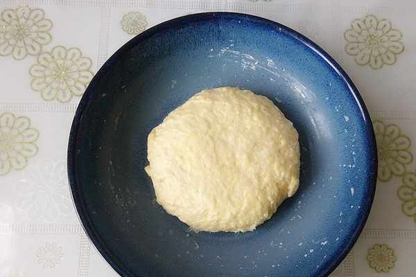 4、把麵粉和成麵團,不用揉怎麼光滑,成團就行,表面刷點油蓋好,餳發。