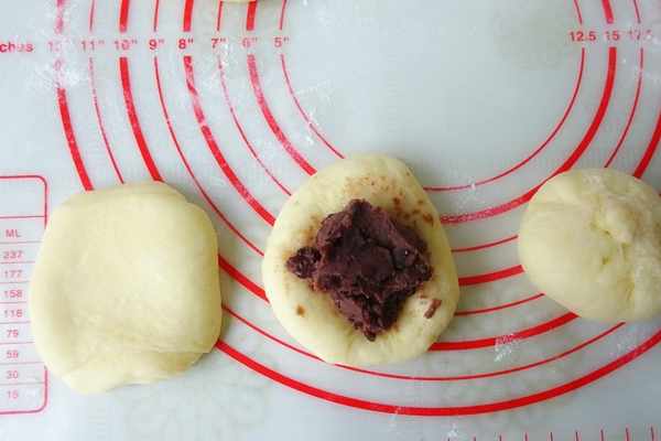 資料:麵粉300克,雞蛋1個,牛奶130克,植物油25克,酵母3克,豆沙餡適量。