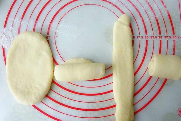 7、每個麵團先擀成橢圓形,再卷起,順過來再擀,然後卷起來。因為我們的麵團都沒怎麼揉,這樣做會讓麵團更細膩、瓷實,比直接揉的還好吃。