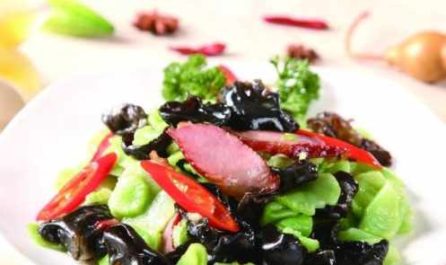 食材:青笋500克、木耳150克、生薑15克、紅椒20克、鹽1茶匙、澱粉1茶匙、糖0.5茶匙、油適量