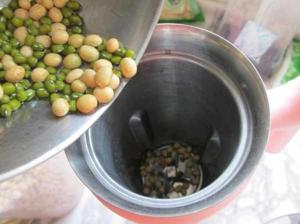 第二步:把迷你破壁機清洗乾淨,倒入清洗乾淨的黃豆和綠豆。這款破壁機採用的是304食品級不銹鋼材質,健康不擔心。