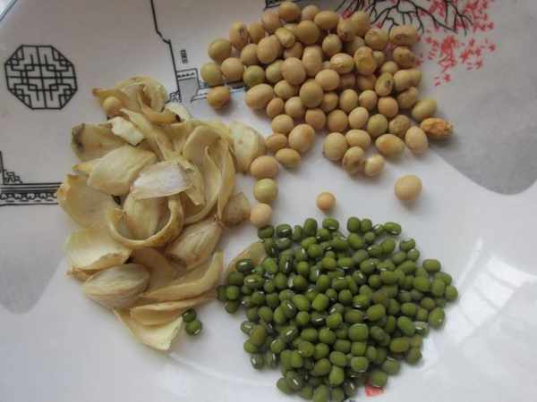 所用資料:綠豆,百合,黃豆,冰糖(可放也可不放)。