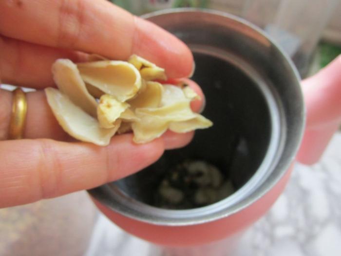 第三步:把百合清洗乾淨放入,百合在買的時候不要買顏色太白的,顏色太白是薰制過的,對身體無益。