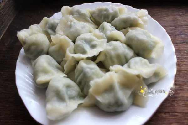 第八步:大一些的鍋放水燒開,餃子煮上,用勺子輕輕推動,蓋上蓋子煮開,撒少許冷水再繼續煮,如此重複三次,餃子就熟透了,撈出開吃,蘸食蒜泥或者米醋味道更棒。