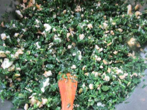 第二步:鍋裏燒開水,把掃帚苗放到鍋裏焯水,這個菜葉面比較粗糙,可以多焯一會,菜軟下來在撈出過凉,剁成碎末。