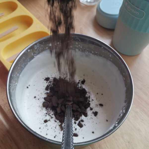 第三步:學廚模具清洗乾淨,插上冰糕棒,把拌好的冰糕糊倒入模具中。