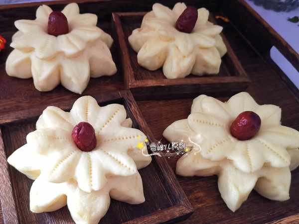花饃做法:1,麵粉加入酵母粉和成麵團,靜置發酵成蜂窩狀。2,揉勻,分成小劑子,用魚形的模具扣出魚形饃,如果沒有模具也可以自己捏哈,畢竟傳統的花饃都是用手捏出來的。3,鍋裏放水,放上篦子抹油防粘,放上面魚,蒸大約20分鐘,熟透出鍋即可。