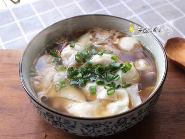 香菇肉餛飩做法:1,準備好肉餡,加入葱,薑,醬油,鹽,味精(也可不放),花生油拌勻,加入香菇碎拌勻。2,拿一個餛飩皮,放上餡料,卷起來,再兩面折到一起,捏緊,餛飩就做好了。3,小葱切末,碗裏加入1勺生抽,1勺醋,1克味精,鹽少許,胡椒粉少許一起調勻,這樣簡單的幾味調料就可以。4,鍋裏放入清水燒開,煮上餛飩,把餛飩充分的煮熟,把調製好的料汁倒入,攪勻,和餛飩一起盛出來即可。