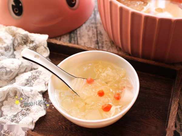 銀耳雪梨百合羹做法:資料:資料:銀耳,雪梨,老冰糖,枸杞。