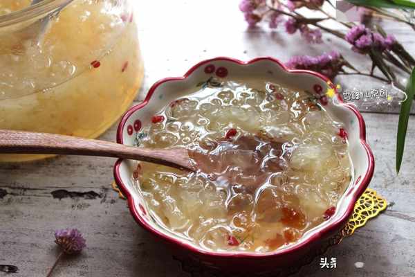 3,梨子的清香飄出,就可以加入適量的老冰糖融化即成。