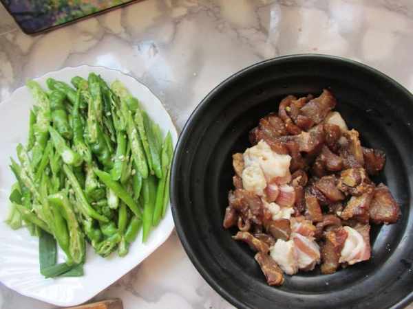 第一步:本地小辣椒改刀,猪肉切好,放入醬油,生抽,醋,蚝油醃漬入味,我一次醃漬了很多,吃得時候拿出改刀即可。