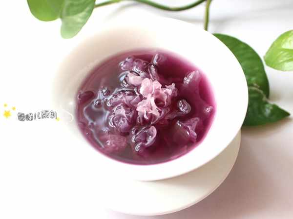 紫薯銀耳羹做法:資料:紫薯1個,銀耳半朵,黃冰糖適量。