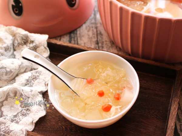 銀耳雪梨百合羹做法:資料:資料:銀耳,雪梨,老冰糖,枸杞。