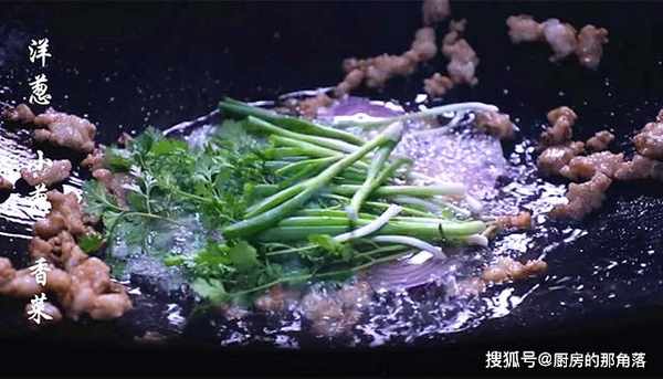 這樣做的目的是進一步激發出香料的味道,口感變得更好。然後準備好生薑、大蒜,小葱、香菜、洋葱(切成絲)。