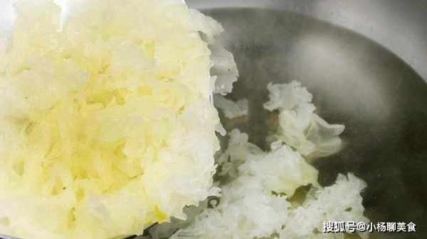 2、泡發銀耳的時候要注意,不要用熱水浸泡,另外一定要泡發好以後再撕成小朵。