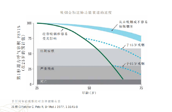 戒烟可顯著改善健康情况並延長壽命,能降低心臟病、肺病、腎衰竭、感染和癌症的風險。戒烟還可降低患骨質疏鬆(即骨骼變脆弱)的幾率,並延緩皮膚老化,减少性功能問題。