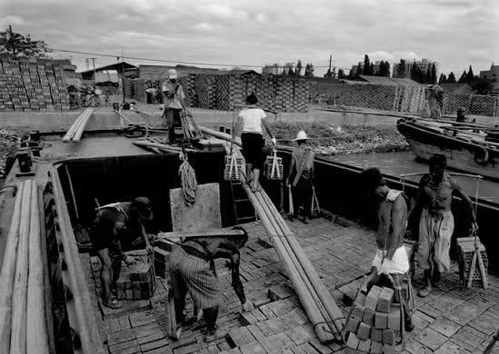 歌曲《碼頭工人歌》:從朝搬到夜,從夜搬到朝,眼睛都迷糊了,骨頭架子都要散了。搬啦搬啦……