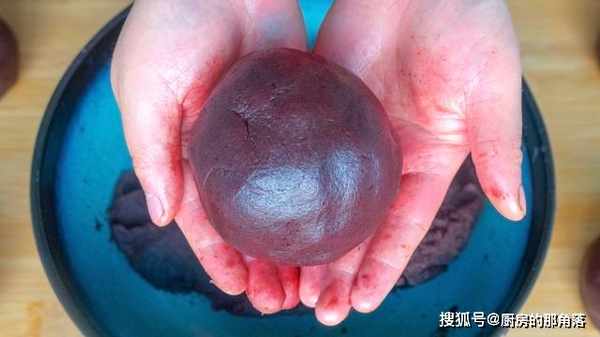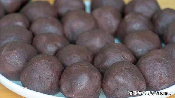 我這裡就是稍微放凉了搓成團兒的豆沙,有點軟,但還是能團成球,這就是質地非常細膩的紅豆沙了,平常製作麵包、糯米糍等經常需要用到紅豆沙,外面買的添加劑太多了,自己動手製作幹淨又健康