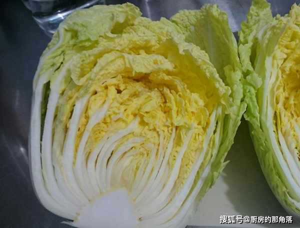 第一步,長白菜先將外層的兩片葉子剝去,如果白菜比較大,需要將其從根部切開,分成四部分,小一點的一分為二;