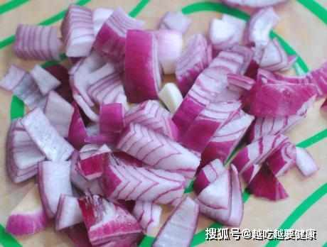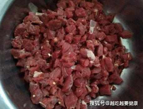 第一步,首先準備一大塊牛肉,將其先切成塊,然後再切成大小適中的粒,用清水將其抓洗乾淨,瀝幹其中的水分,洋葱2個,剝皮外層的幹皮後,洗淨切成小粒;