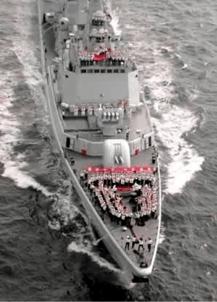 △"深圳"號導彈驅逐艦在航行中舉行宣誓儀式