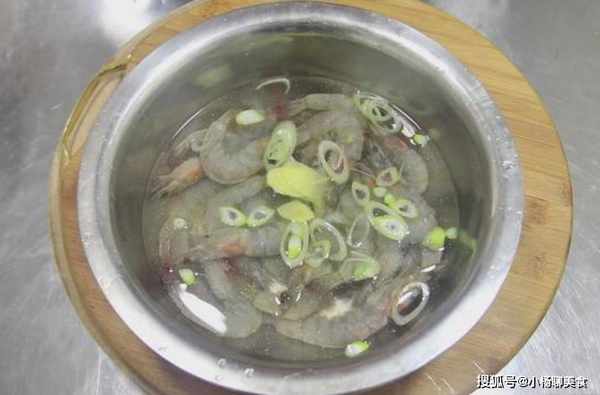1、首先我們把大蝦洗乾淨,剪掉蝦須,開背去掉蝦線,再浸泡清水中。接著切一點蔥花和薑片放進去,加一點料酒去去腥味。