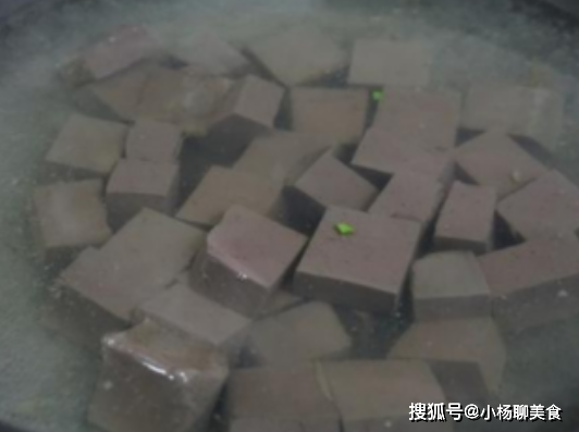 第二步:我們需要在鍋中放入水,等水熱之後把鴨血放入鍋中焯一下水,這樣做是為了讓鴨血在炒的時候能够不會那麼容易的破碎,也能够讓它的口感更加的美味。