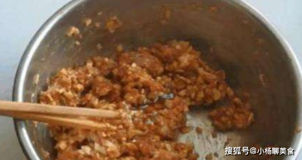 然後在剁好的牛肉餡裡面加入少許的葱薑末,加入少許的生抽、食鹽攪拌均勻,這樣我們的牛肉餡兒就做好了。