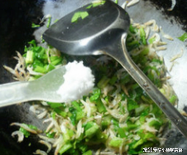 第四步,在出鍋前加入蝦皮翻炒均勻,即可出鍋享用。