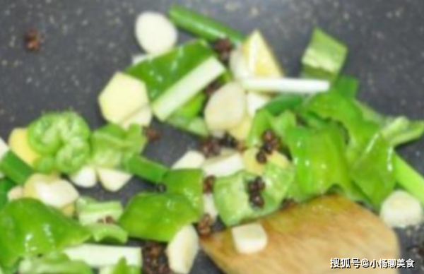 第二步:在鍋中倒入適量的食用油等油溫到六七成熱的時候把大葱和生薑放入鍋中進行翻炒,炒出葱香味和薑香味。
