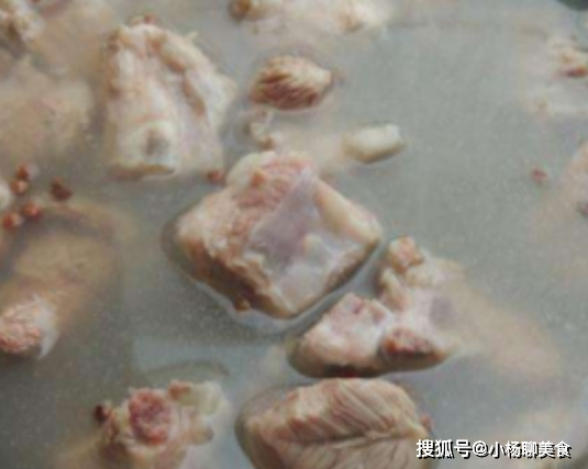 第三步:在鍋中倒入適量的清水,用大火把水燒開,之後放入猪骨,煮大約三到五分鐘,這樣的話,可以很好的去除它的腥氣,之後撈出。