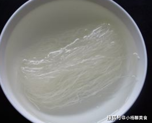 第四步:把粉絲放在一個盆中,加入適量的溫水,泡大約十五分鐘。