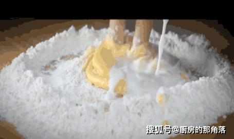 第二步:在210克高筋麵粉中間,弄一個小洞,然後加入28克的糖,3克酵母,3克食用鹽,20克全蛋液一邊攪拌,一邊倒入118克的牛奶,攪拌後以後的麵團,和之前的湯種混合,揉搓均勻。然後蓋上保鮮膜發酵十分鐘。