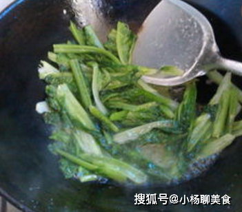 放入萵筍葉,用大火快速翻炒,笋葉變色後加入少許的食鹽和蚝油,保持大火快速翻炒。翻炒均勻後就可以出鍋了,稍稍放凉之後就可以直接開吃了。