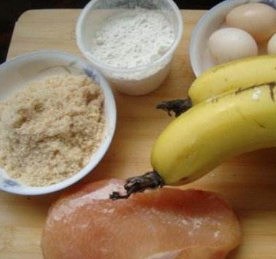 大家平時吃香蕉都是當成水果來吃,其實香蕉也是可以做成菜的,大家是不是都沒有吃過。香蕉中含有很多的澱粉質,吃起來十分美味,還可以清熱潤腸,很多人都特別喜歡吃香蕉,但是大家都沒有吃過用香蕉來做的菜,最多也就是在小攤上吃過炸香蕉。那麼今天阿堂哥給大家分享一下香蕉是怎麼來做菜的,一起來看看吧!資料:香蕉、雞脯、雞蛋、麵粉、生粉、麵包糠、鹽、白胡椒粉、料酒。