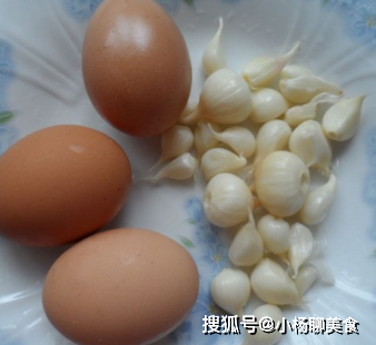 首先準備新鮮的雞蛋、大蒜,把大蒜剝掉皮備用。