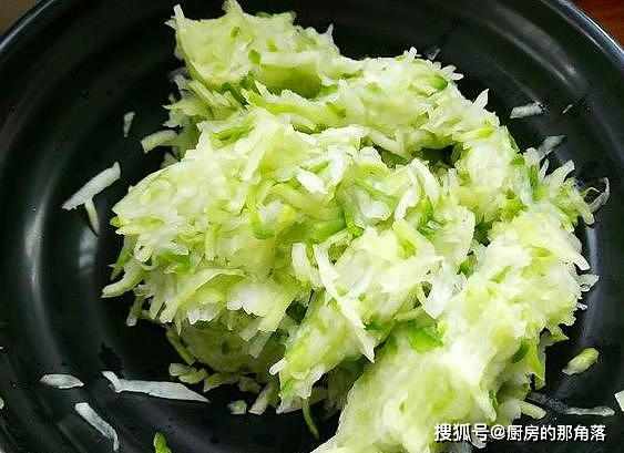 第一步:首先將青蘿蔔去皮擦成細絲,蘿蔔絲可以擦短一點,這樣口感才會更好。炒鍋放入適量的清水燒開,放入適量的精鹽,放入蘿蔔絲焯水1分鐘,這樣可以去除蘿蔔的苦味和辣味,同時保證蘿蔔的脆爽口感,然後撈出控幹水分備用。