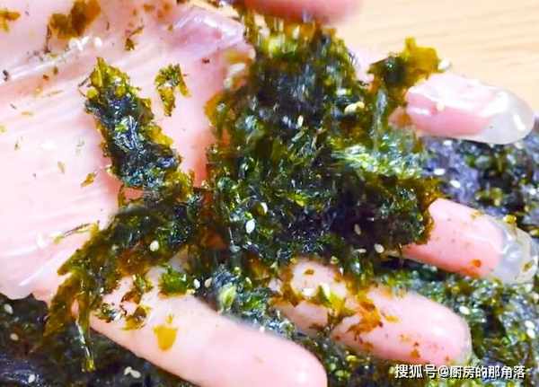 3.做海苔的時候,放入料汁的目的主要是增香入味,同時還能使海苔表面沾上少許的芝麻。這樣的海苔才更加美味。