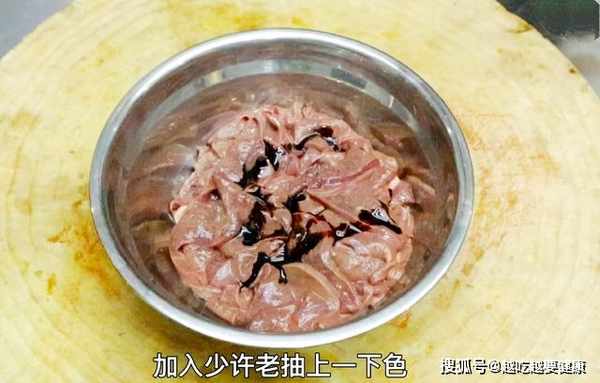 3.將其幹水分的猪肝倒在大碗中,然後在裡面放入少許的料酒去腥。再加入少許的辣鮮露給它新增點辣度,然後用手將其攪拌均勻。最後在裡面加入少許的玉米澱粉,澱粉的量也不要加得太多。否則炒出來的猪肝發黏不好吃。加入一小把就可以了。