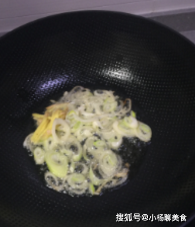 起鍋燒油,油熱後,放入切好的葱薑爆香。