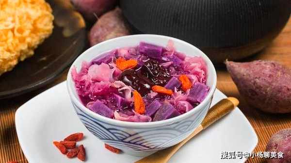 步驟四:然後換成中小火,慢燉10分鐘,然後倒入紫薯,再次燒開後。