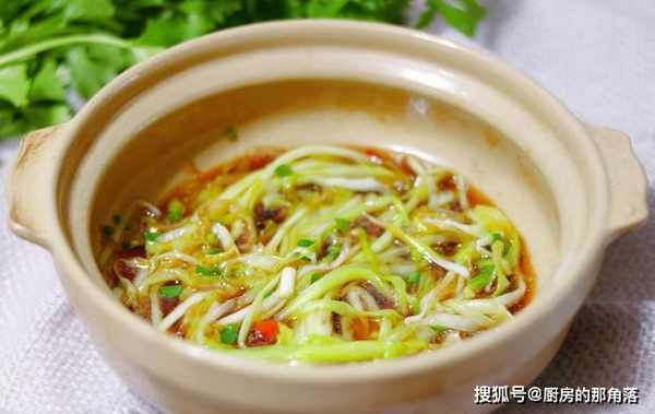 步驟3,把洗好的韭黃全部放入砂鍋中,用勺子將調好的醬汁全部澆淋在韭黃段上,蓋上蓋子。韭黃的話,太長了怕不好嚼碎,可以改刀切一下。