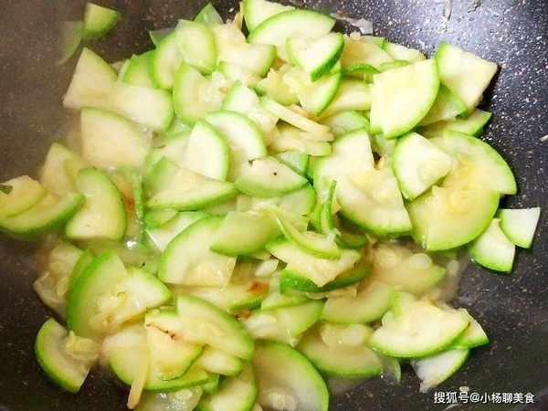 步驟四:然後倒入西葫蘆,翻炒到西葫蘆變軟變熟。